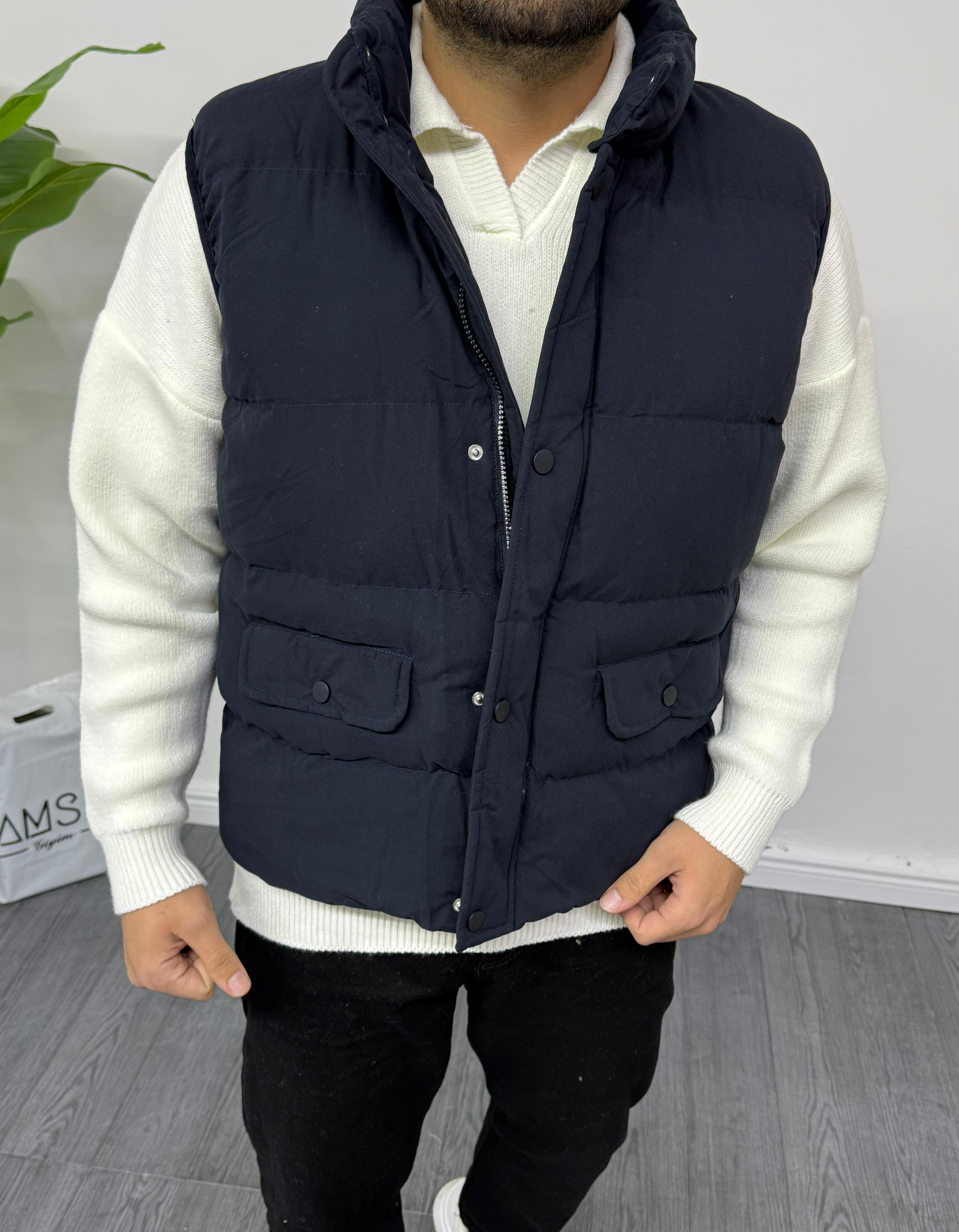 Fermuar Kapamalı Çıt Çıt Kapama Şişme Yelek Lacivert (1016)