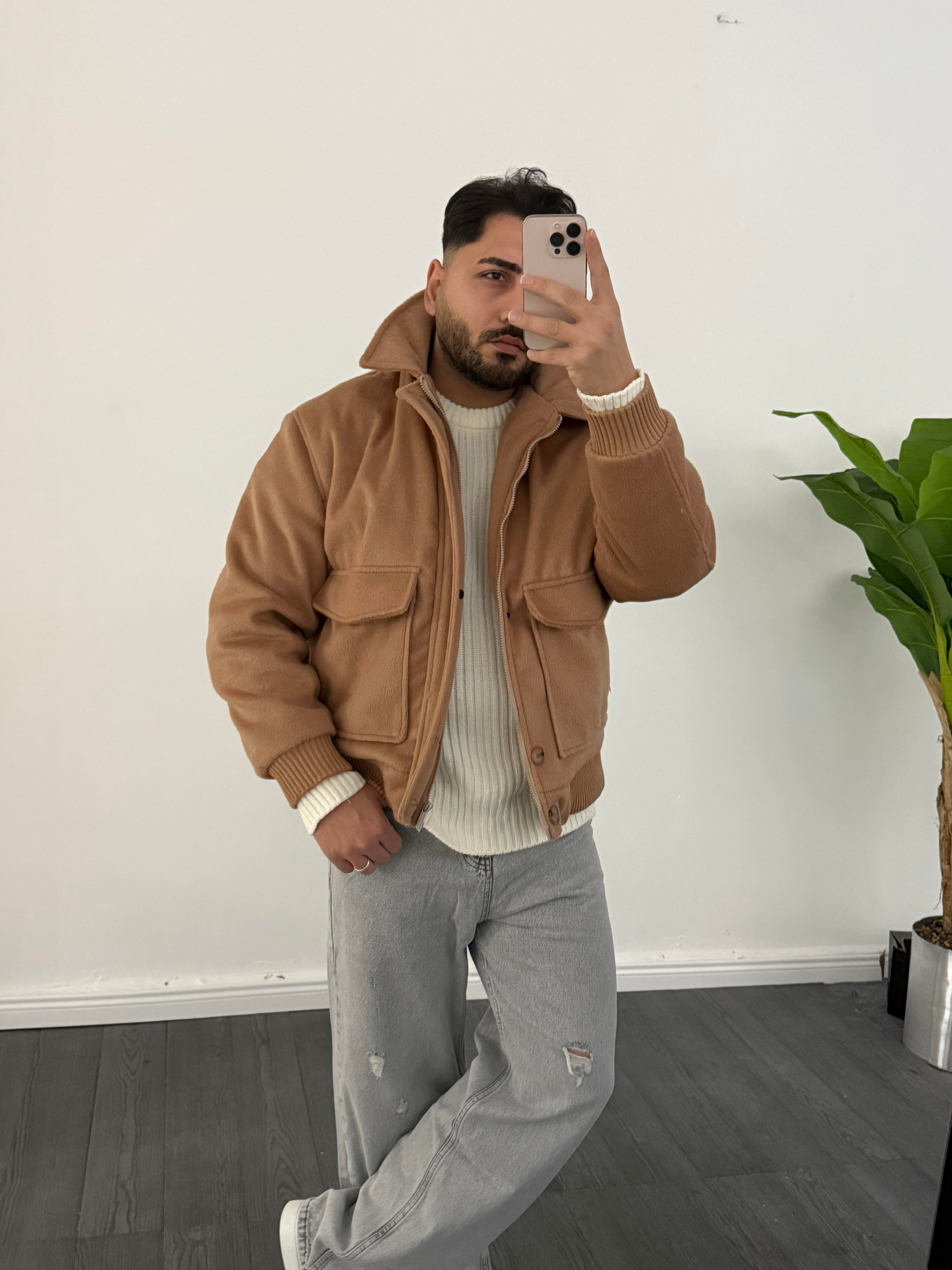 Kaşe Mont Beli Ribanalı Torba Cepli Açık Kahve (LNS101)