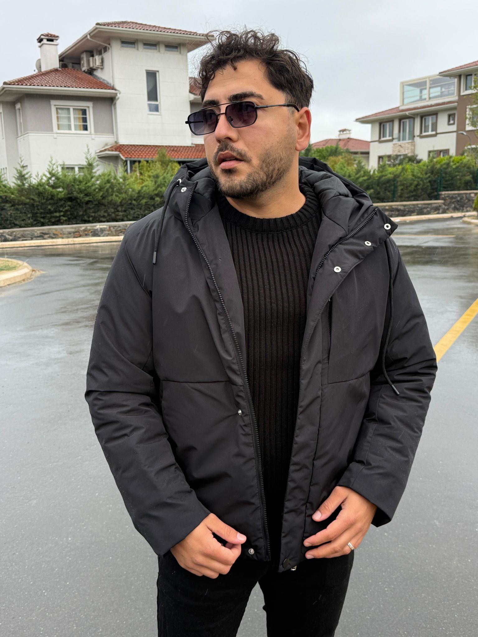 Mankenin ölçüleri 180 boy 90 kg L beden giyiyor Ürünün özellikleri: Su geçirmez, kapşon detaylı, üç adet fermuarlı, cep etek klips detaylı içi kapitone astarlı