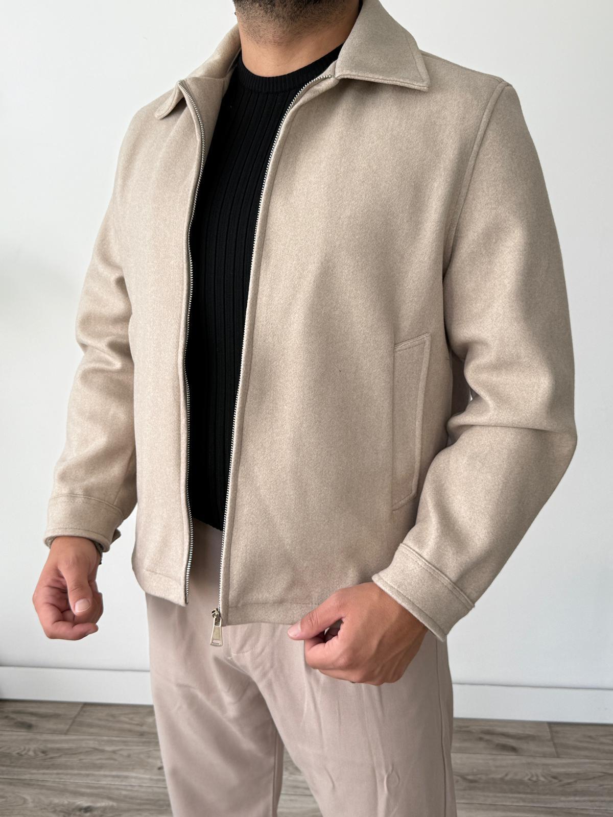 Klasik Tam Kalıp Kaşe Yakalı Ceket Bej (STR04)