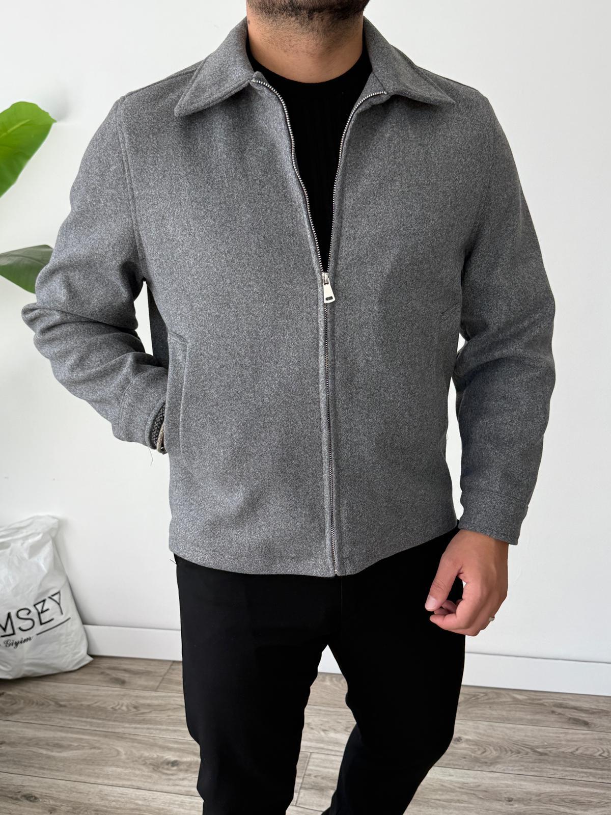 Klasik Tam Kalıp Kaşe Yakalı Ceket Gri (STR04)